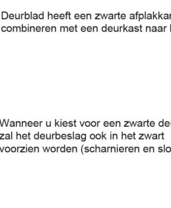 • Deurbeslag: sleutelslot (BBT) & scharnieren (inox scharnieren en slot bij de ‘Realwood Nature Oak’ en ‘White’ deurkast en zwarte scharnieren en slot bij de ‘Black Mat’ deurkast)