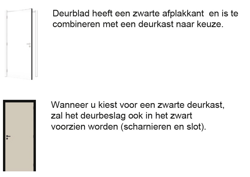 Het slot en de scharnieren zijn voorgefreesd en de deur, de deurkast/kozijn en het beslag zijn omkeerbaar.