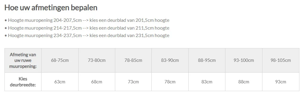 • Deurkast te verzagen op muurbreedte