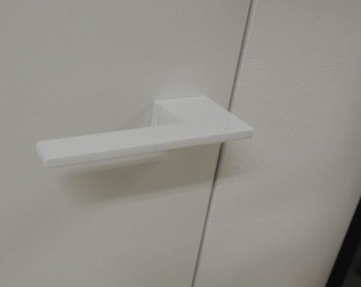 De rozet loopt gelijk met de deurkruk wat een strakke lijn creëerd.