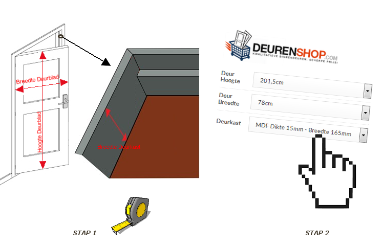 3) Kies uw gewenste deur op onze webwinkel en geef uw afmetingen op.